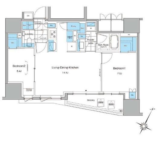 | 間取り | 2LDK | 専有面積 | 59.93m2 |