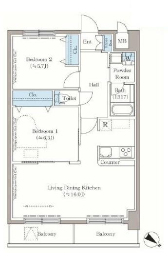 | 間取り | 2LDK | 専有面積 | 62.94m2 |