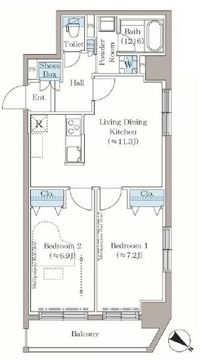 | 間取り | 2LDK | 専有面積 | 57.03m2 |