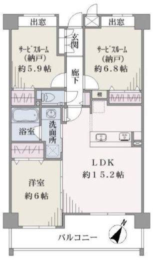 | 方角 | 南東 | バルコニー面積 | 10.78m2 |