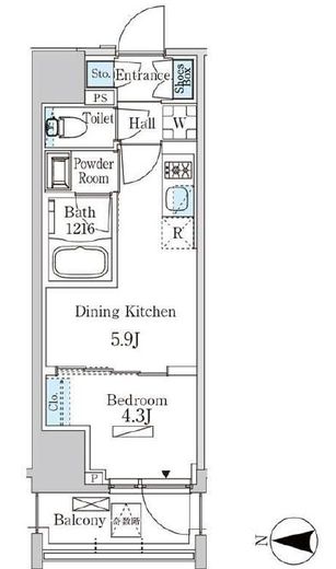 | 間取り | 1DK | 専有面積 | 26.2m2 |