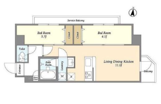 | 間取り | 2LDK | 専有面積 | 42.68m2 |