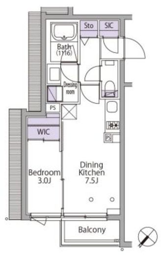| 間取り | 1LDK+WIC+SIC | 専有面積 | 29.44m2 |