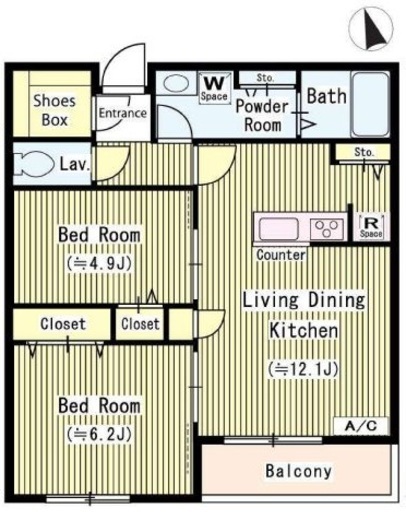 | 間取り | 2LDK | 専有面積 | 54.99m2 |