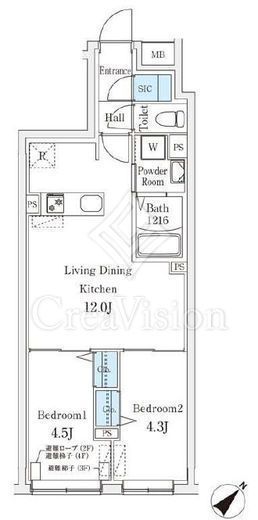 | 間取り | 2LDK+SIC | 専有面積 | 45.79m2 |