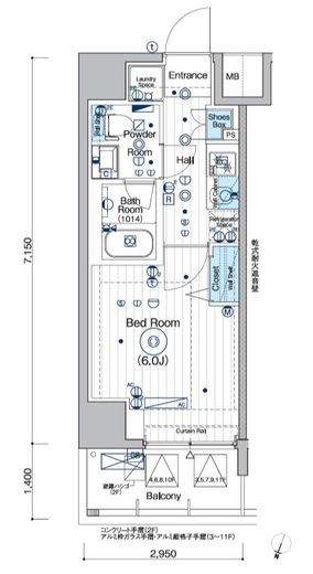 | 間取り | 1K | 専有面積 | 21.09m2 |