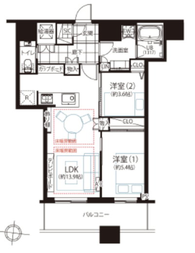 | 間取り | 2LDK | 専有面積 | 58.94m2 |