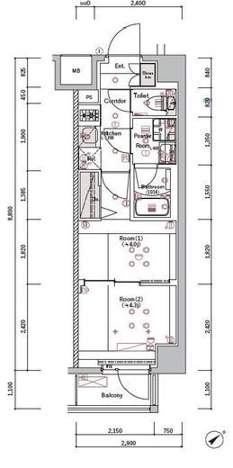 | 間取り | 2K | 専有面積 | 25.52m2 |