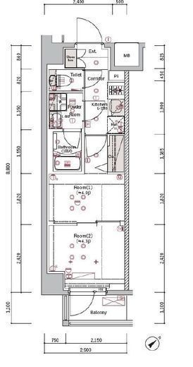 | 間取り | 2K | 専有面積 | 25.52m2 |