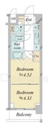 | 間取り | 2K | 専有面積 | 26.25m2 |