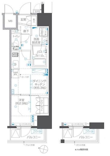 | 間取り | 1DK | 専有面積 | 26.19m2 |