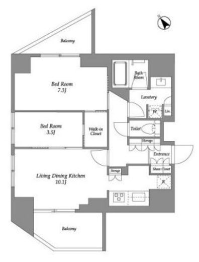 | 間取り | 2LDK+WIC | 専有面積 | 54.76m2 |
