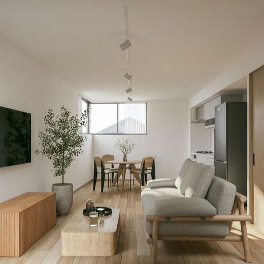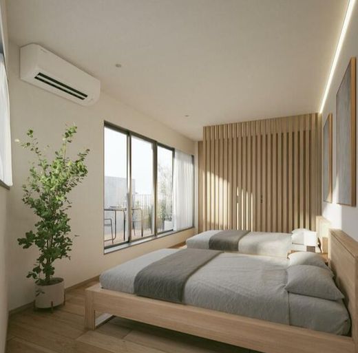 物件は地上3階建ての低層レジデンス。1LDK・2LDK展開し、室内はベージュやホワイトのあたたかみのあるおしゃれな内装。一部住戸には専用庭、ルーフバルコニー、ウォークインクローゼット付きで上質で快適なプライベート空間が広がります。