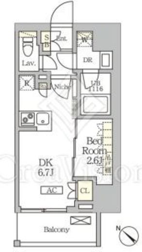 | 間取り | 1DK | 専有面積 | 25.16m2 |