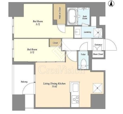 | 間取り | 2LDK+WIC | 専有面積 | 46.04m2 |