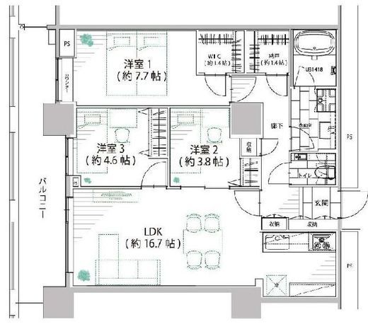 | 間取り | 3LDK+WIC | 専有面積 | 79.57m2 |
