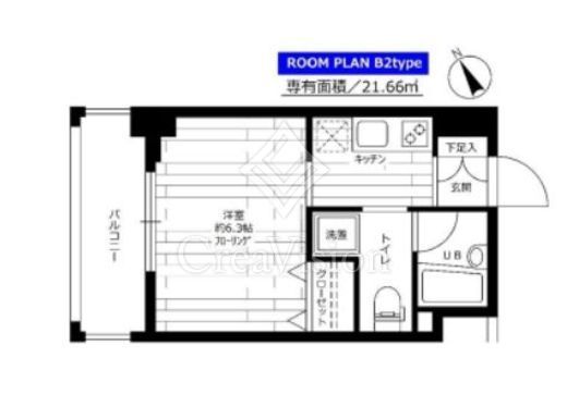 | 間取り | 1K | 専有面積 | 21.66m2 |