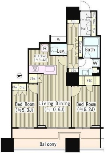 | 間取り | 2LDK+WIC | 専有面積 | 64.56m2 |