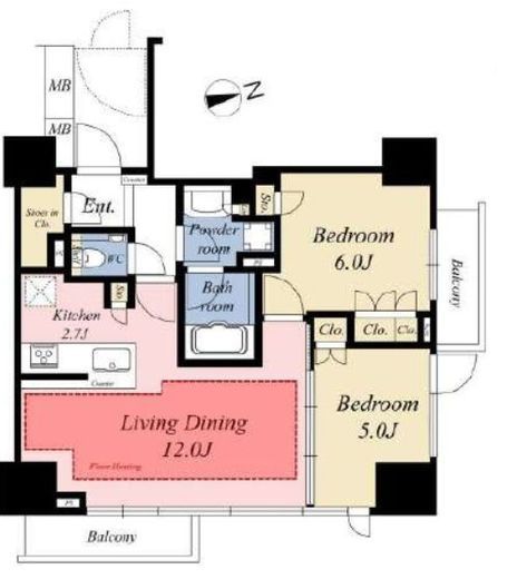 間取り | 2LDK | 専有面積 | 57.09m2 |