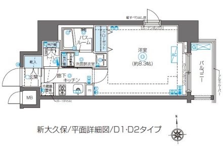| 間取り | 1K | 専有面積 | 25.54m2 |