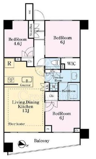 | 間取り | 3LDK+WIC | 専有面積 | 63.36m2 |