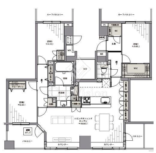 | 間取り | 3LDK+WIC+SIC | 面積 | 95.4m2 |