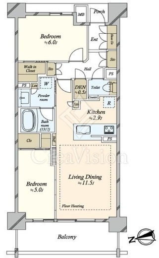 | 間取り | 2LDK+WIC | 専有面積 | 61.4m2 |