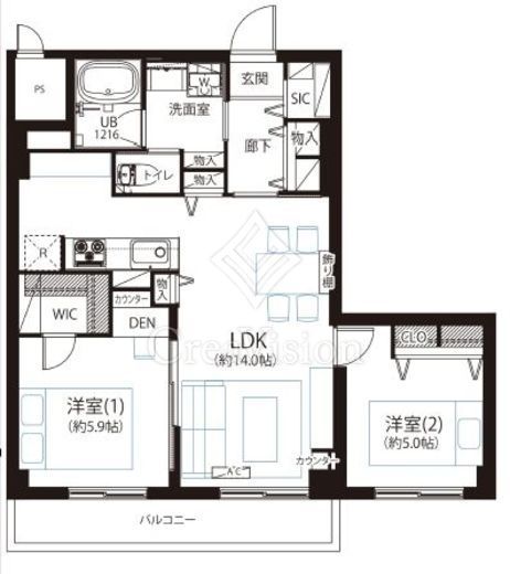 | 間取り | 2LDK+WIC+SIC | 面積 | 58.19m2 |