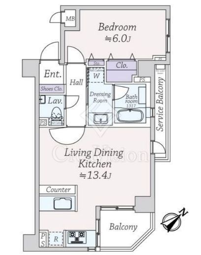 | 間取り | 1LDK | 専有面積 | 46.54m2 |