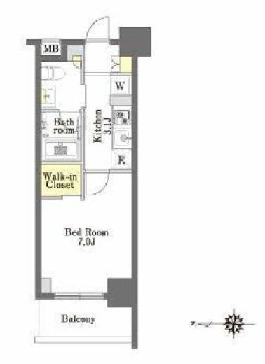 | 間取り | 1K+WIC | 専有面積 | 25.02m2 |