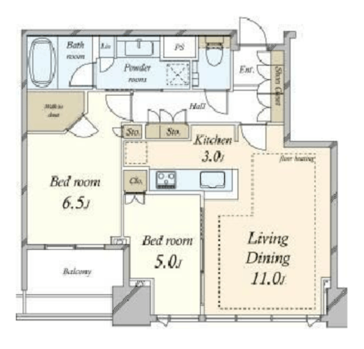 | 間取り | 2LDK+WIC | 面積 | 60.48m2 |