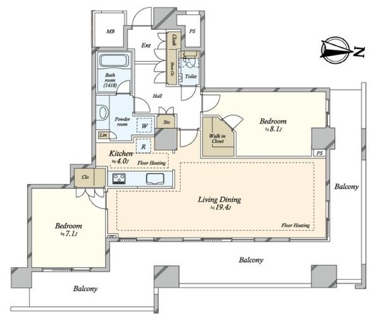 | 間取り | 2LDK+WIC | 専有面積 | 87.28m2 |