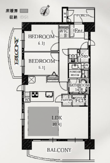 | 間取り | 2LDK+WIC | 面積 | 75.9m2 |