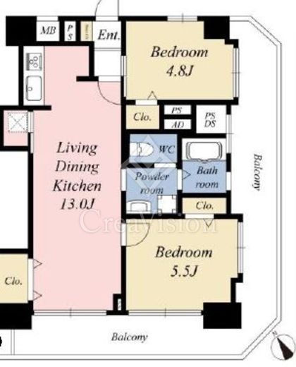 | 間取り | 2LDK | 専有面積 | 52.77m2 |