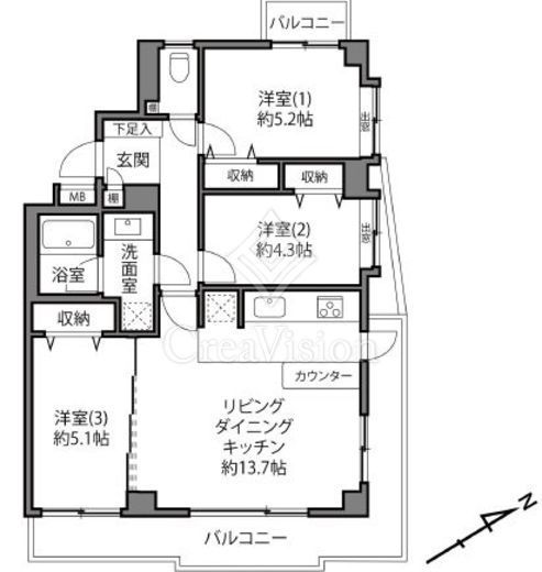| 間取り | 3LDK | 専有面積 | 65.38m2 |