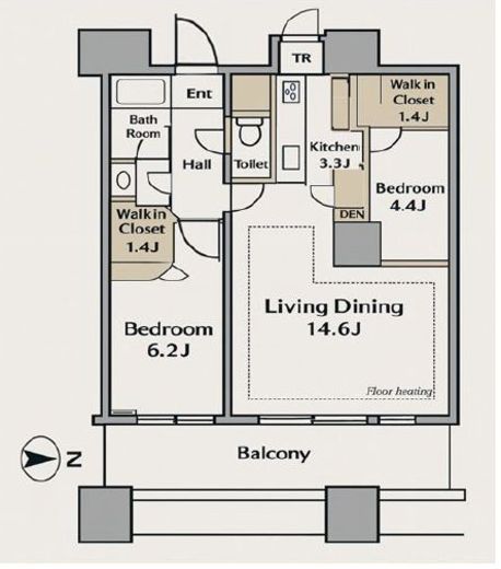 | 間取り | 2LDK+WIC | 専有面積 | 69m2 |