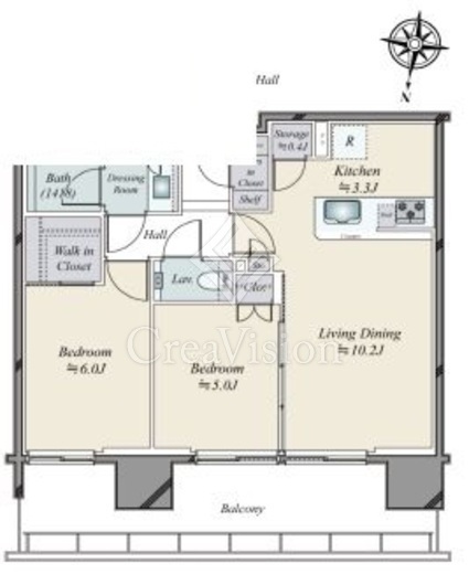 | 間取り | 2LDK+WIC | 専有面積 | 58.93m2 |