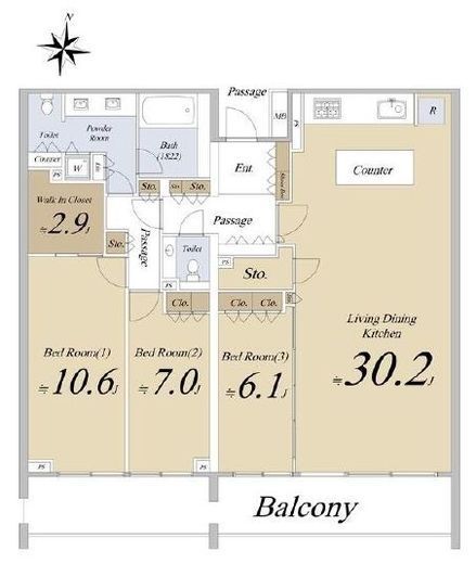 | 間取り | 3LDK+WIC | 専有面積 | 125.35m2 |