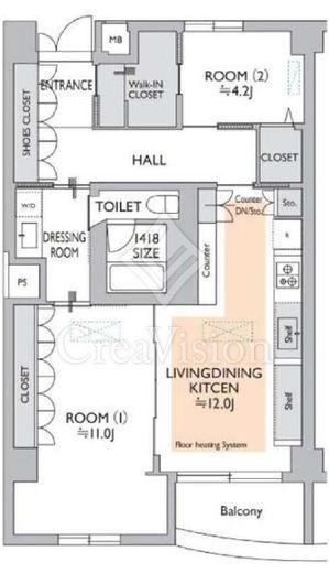 | 間取り | 2LDK+WIC | 面積 | 77.83m2 |