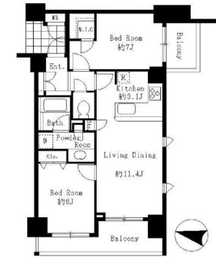 | 間取り | 2LDK+WIC | 専有面積 | 60.88m2 |
