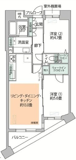 | 間取り | 2LDK | 専有面積 | 56.05m2 |