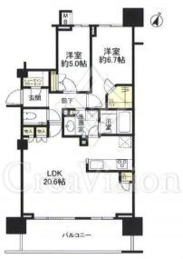 部屋1 LDK20.6帖 部屋2 洋室6.7帖