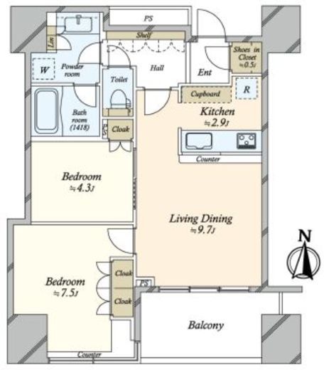 間取り | 2LDK | 専有面積 | 56.78m2 |