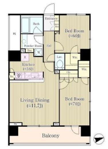 | 間取り | 2LDK+WIC | 専有面積 | 65.16m2 |