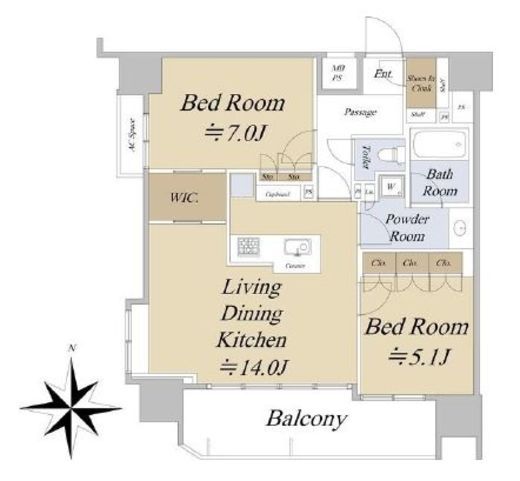 間取り | 2LDK+WIC | 専有面積 | 63.64m2 |