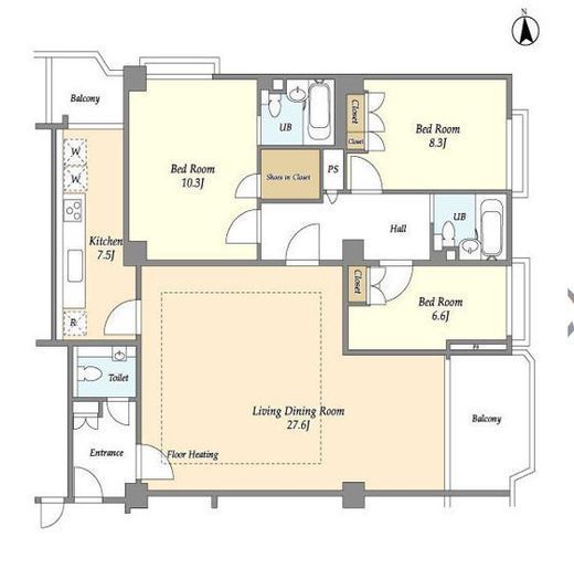 | 間取り | 3LDK+WIC | 専有面積 | 134m2 |