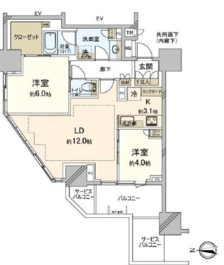 | 方角 | 西 | バルコニー面積 | 6.59m2 |