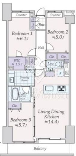 | 間取り | 3LDK+WIC | 面積 | 74.18m2 |