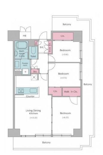 | 間取り | 3LDK+WIC | 専有面積 | 62.9m2 |