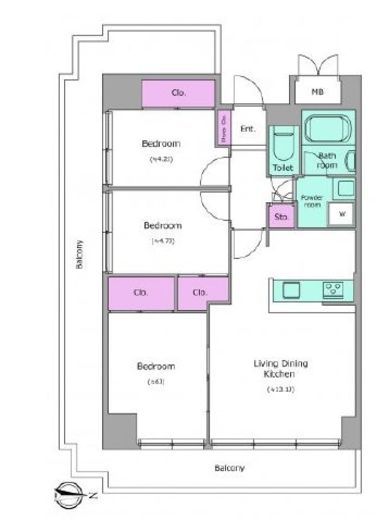 | 間取り | 3LDK | 専有面積 | 62.9m2 |